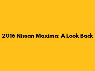 2016 Nissan Maxima: A Look Back
