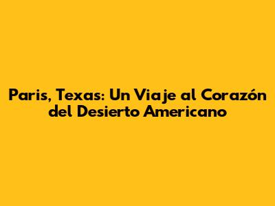 Paris, Texas: Un Viaje Al Corazón Del Desierto Americano